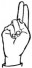На ћирилици написано МИРЈАНА ЦВЕЈАНОВ састоји се из 15 слова [?]. Исписано ћириличном једноручном азбуком за глувонеме: